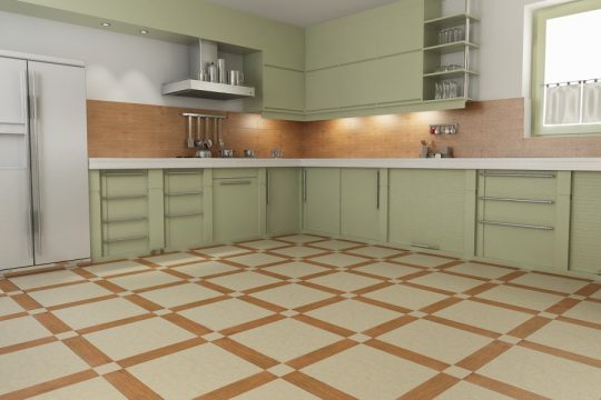Кухня — особенное место в доме, поэтому к выбору пола следует подойти с особой тщательностью. Необходимо, чтобы напольное покрытие было водостойким, ударопрочным, износостойкими, гигиеничным (легко отмывалось от различных загрязнений), и, при этом, выглядело эстетично. Среди множества различных предложений рассмотрим наиболее популярные: